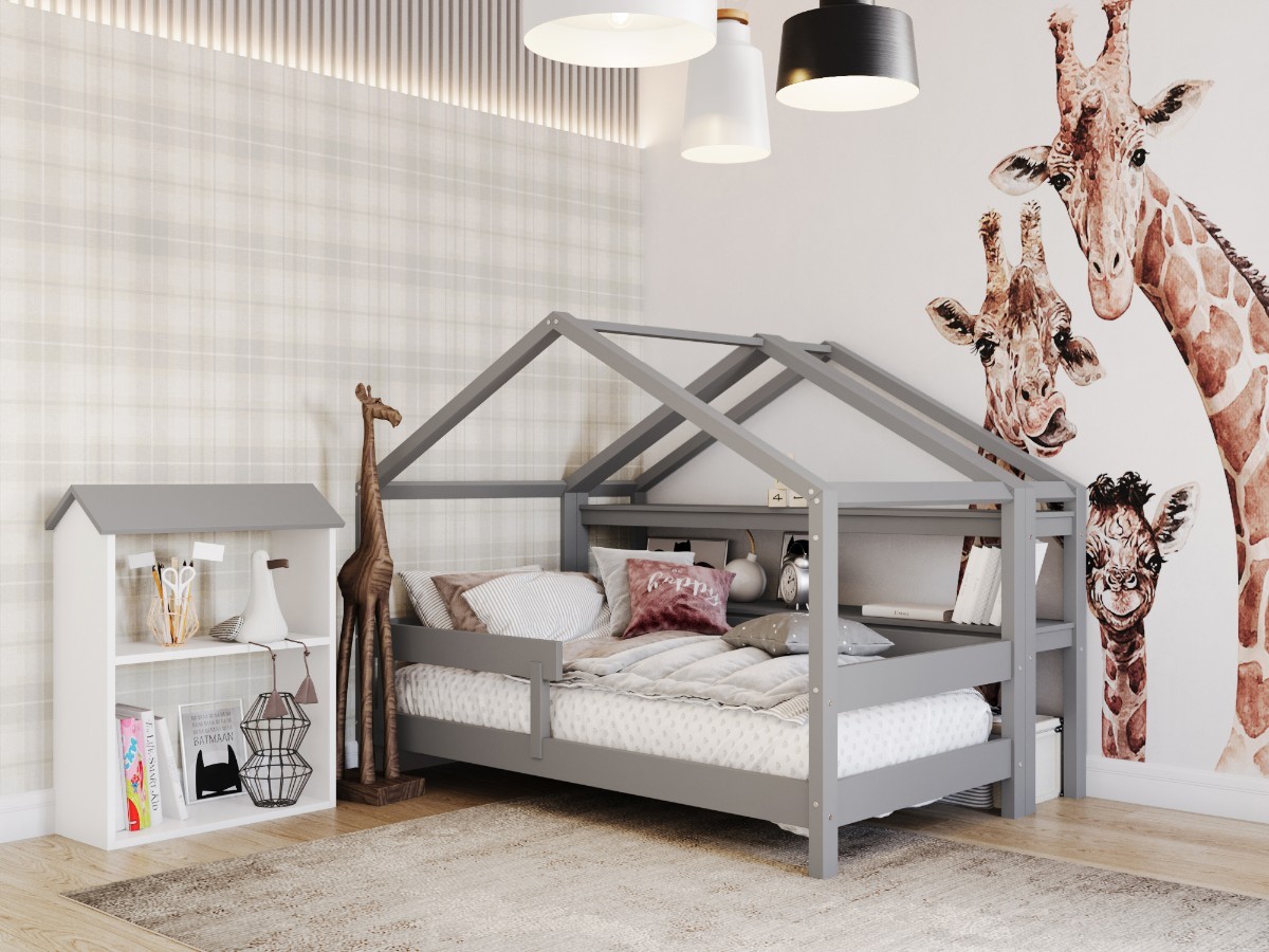 LIGHT GREY YappyHytte house bed, YappyHytte shelf and YappyHus shelf