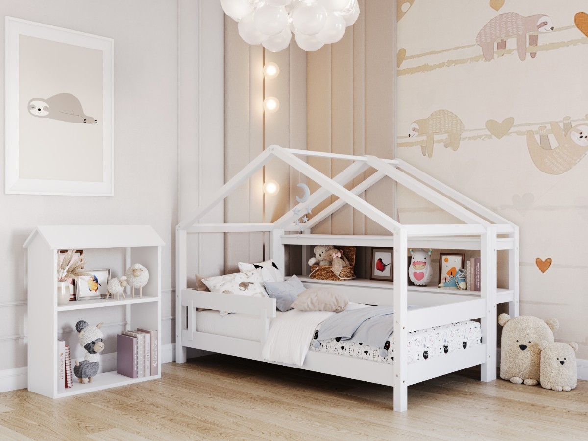 WHITE YappyHytte house bed, YappyHytte shelf and YappyHus shelf